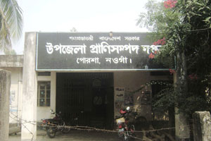 নওগাঁ জেলার পোরশা উপজেলার উপজেলা প্রশাসন ও উন্নয়ন কেন্দ্রের ফটকের ঠিক বিপরীত দিকে মূল রাস্তার উত্তর পার্শ্বে উপজেলা প্রাণি সম্পদ দপ্তরটি অবস্থিত। এটি ৩৩ শতাংশ প্রাণিসম্পদ অধিদপ্তর এর নিজস্ব জমির উপর এক পার্শ্বে আট কক্ষবিশিষ্ট একতলা একটি দালান এবং দুটা পুরাতন অকেজো দালান এবং একটি কৃত্রিম প্রজনন ক্ষেত্র ইত্যাদি স্থাপনা নিয়ে প্রতিষ্ঠিত। এর মধ্য এক পাশে রয়েছে নেপিয়ার ঘাসের প্রদর্শনি প্লট যা বাশের বেড়া দ্বারা বেষ্টিত।